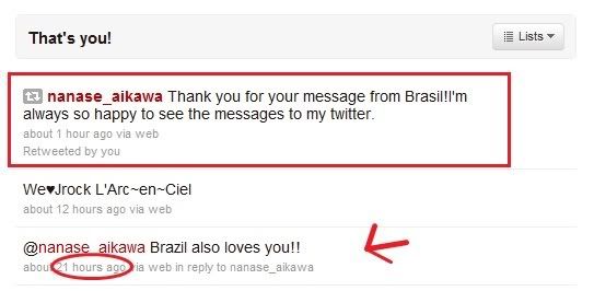 Nanase agradece às mensagens mandadas pelos fãs brasileiros no twitter, eu mesma havia mandado uma algumas horas antes, espero que ela tenha lido. ^^